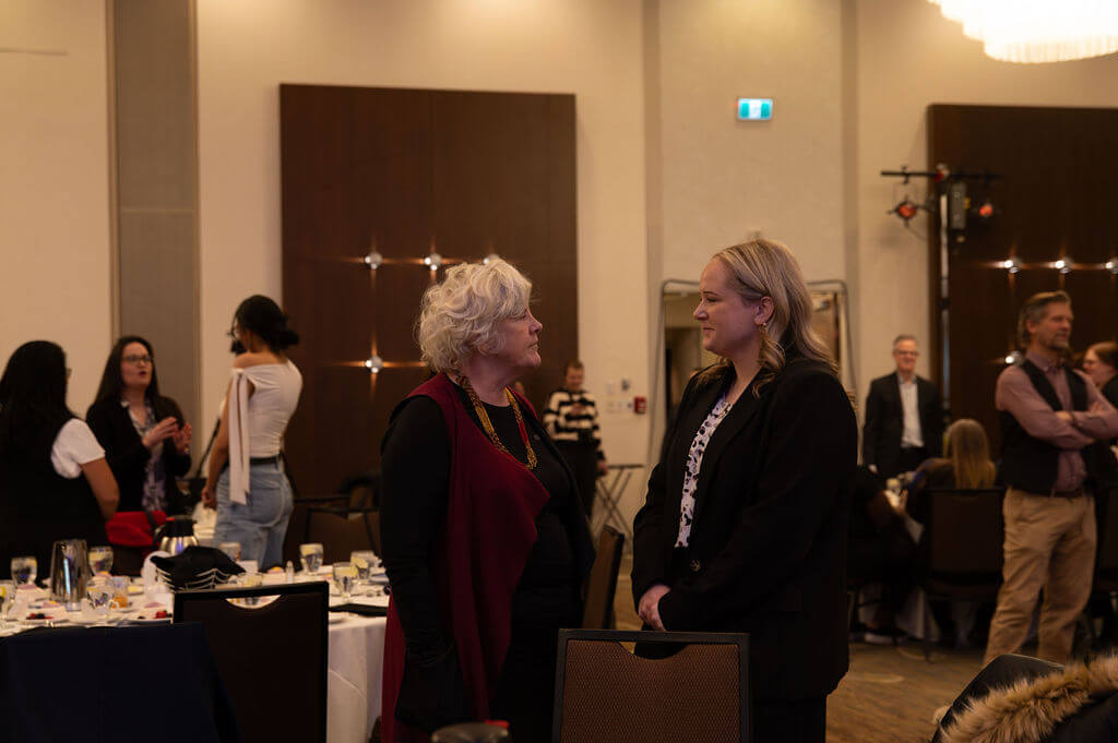The afternoon lunch period featured speakers such as Darion Ducharme, from last year's luncheon. Ducharme mentioned that last year's luncheon contributed to the expansion of his business Teqare, which enabled them to visit 46 separate First Nations communities across the country to deliver workshops on cybersafety. Â
